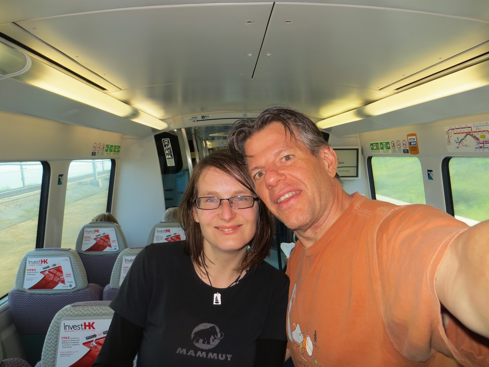 After a short wait at the customs we get our visa. We follow the crowd of travelers into a large airport hall. Hotel booths with their bright advertisements compete for our attention, a line of taxis awaits outside. At the information desk where we learn the fastest and most comfortable way of getting to the downtown of Hong Kong Island is the Airport Express. We make our way through the pond of people rushing to their gates or aiming for the shops and then onboard the train we leave the airport scene behind.
