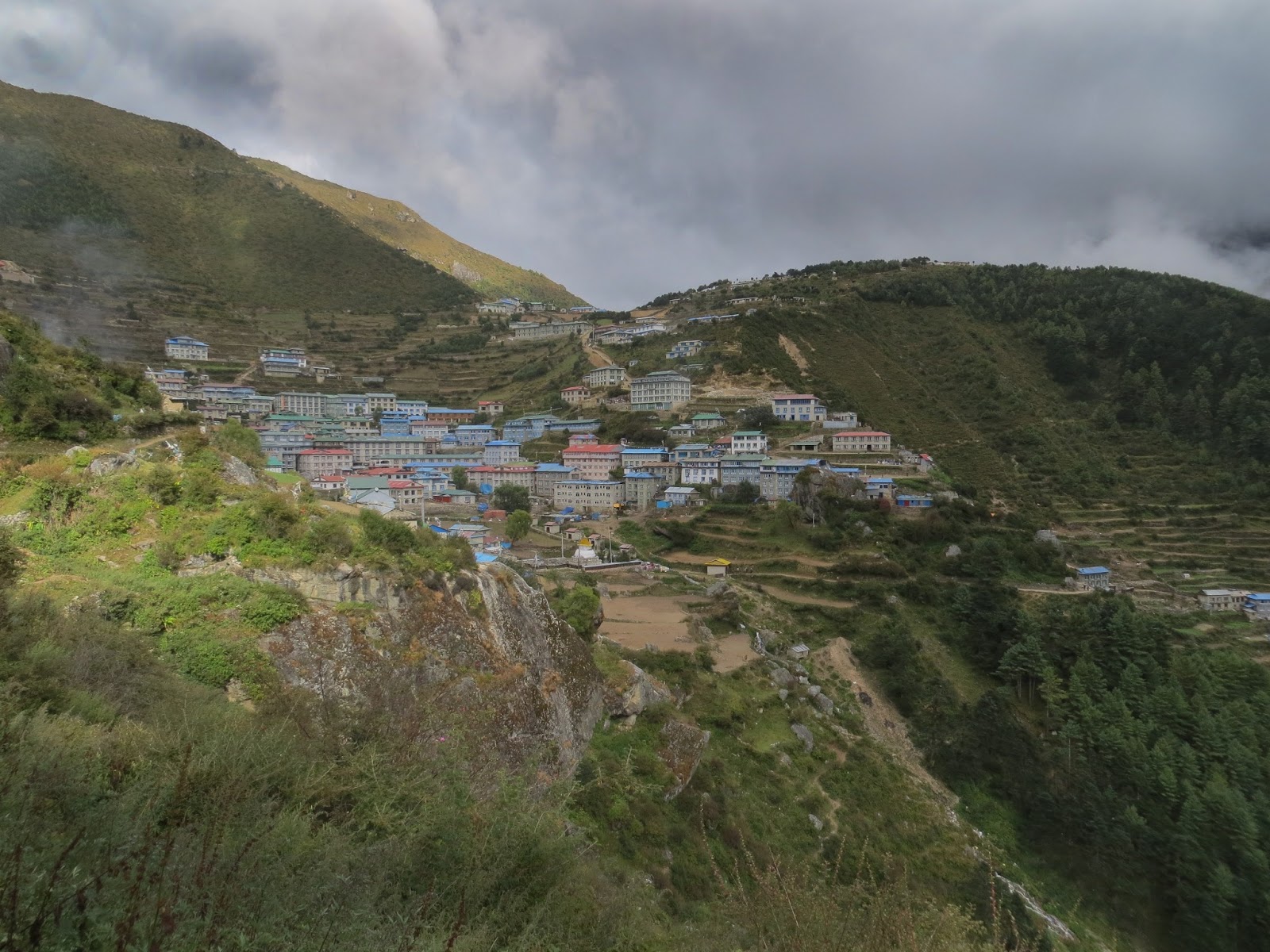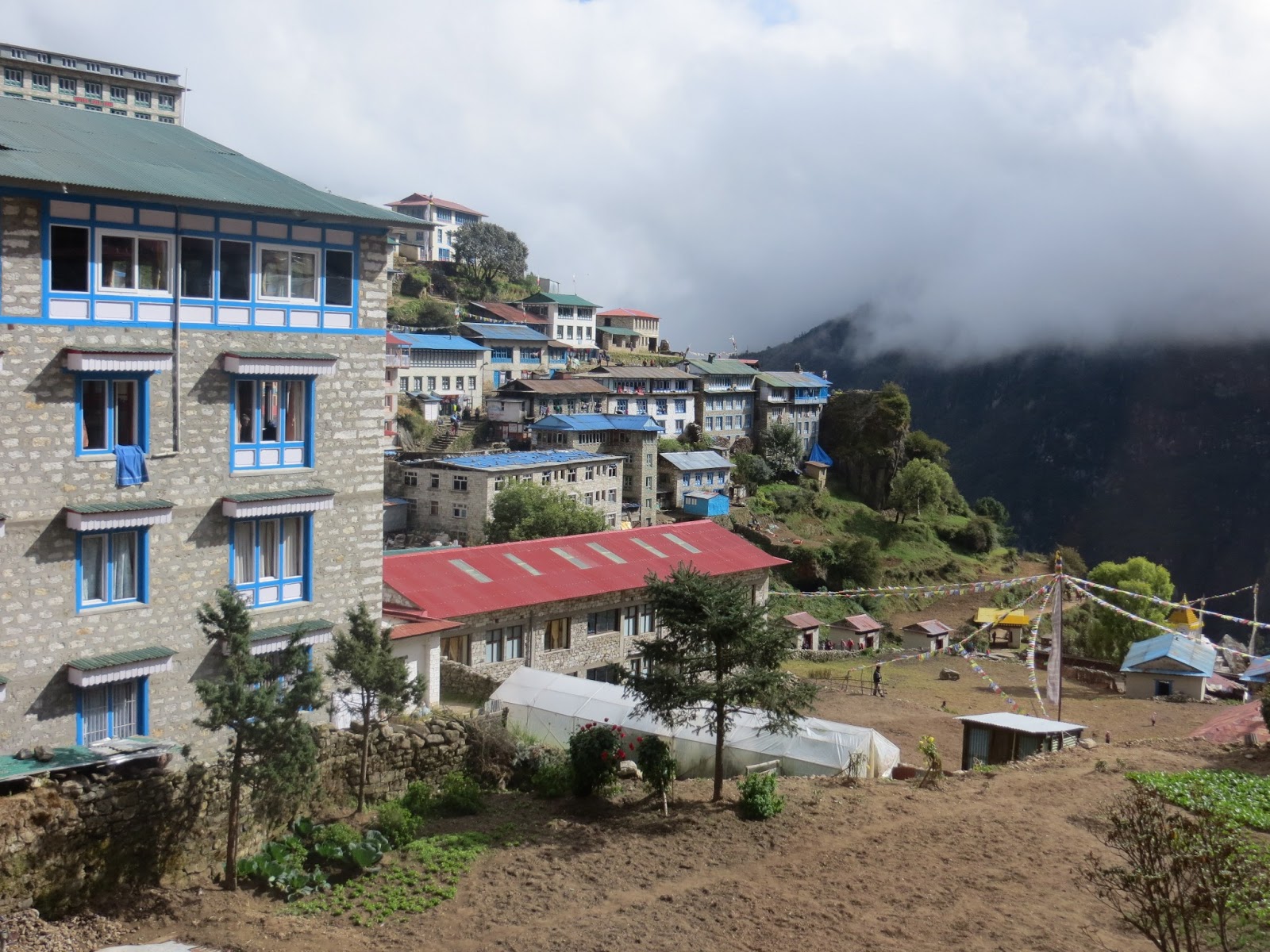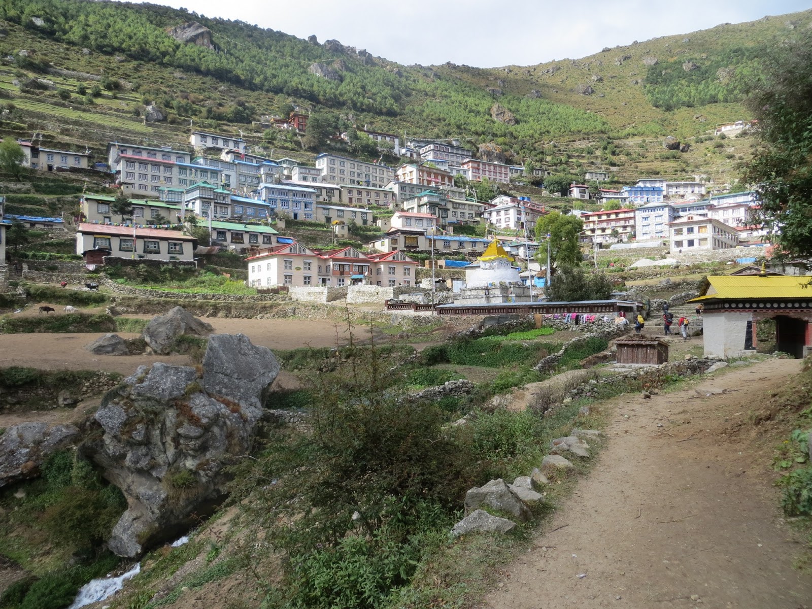 The village with its narrow cobblestone streets and countless steps charms us instantly. We walk past store fronts and coffee shops until we reach the end of the shopping district. The path continues and we pass several dwellings before we find ourselves on an open slope. Faint, the path is still there and we follow, finding a great viewpoint where we call it a day and after snapping few photos we retrace our steps to Namche Hotel.