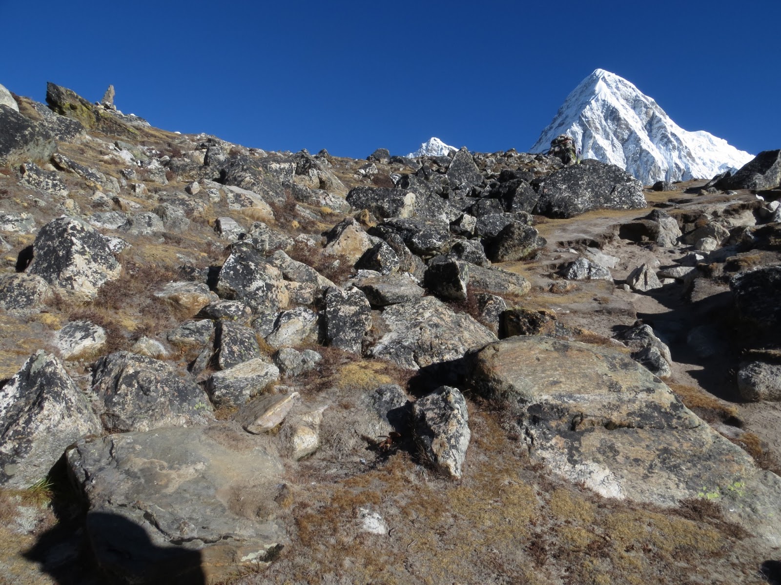 The world around consists of rock and ice. From the barren landscape some of the highest peaks in the world loom above us. In just few hours we are to reach Everest Base Camp. The path is relentless. Up and down, up and down. Even the down becomes a workout.