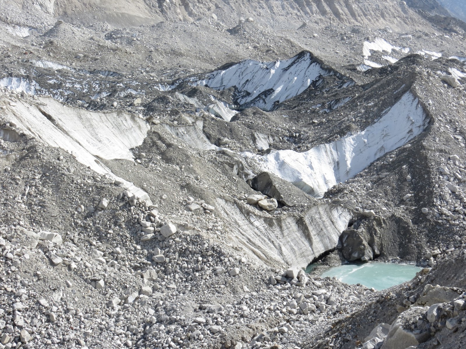 It takes us 3 hours to cover the approximately 2.75 miles (800 ft el. gain) between Lobuche and Gorak Shep, the last village en route. After a brief and much welcome stop for lunch we head to the base of the tallest mountain. The scenery takes my breath away (so does the altitude).