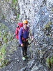 By the time we reach the via ferrata section at 17:30 my legs are trembling. I grab the cable, trying to calm my racing heart. The fact that one of the anchors peels off the wall does not help the case.