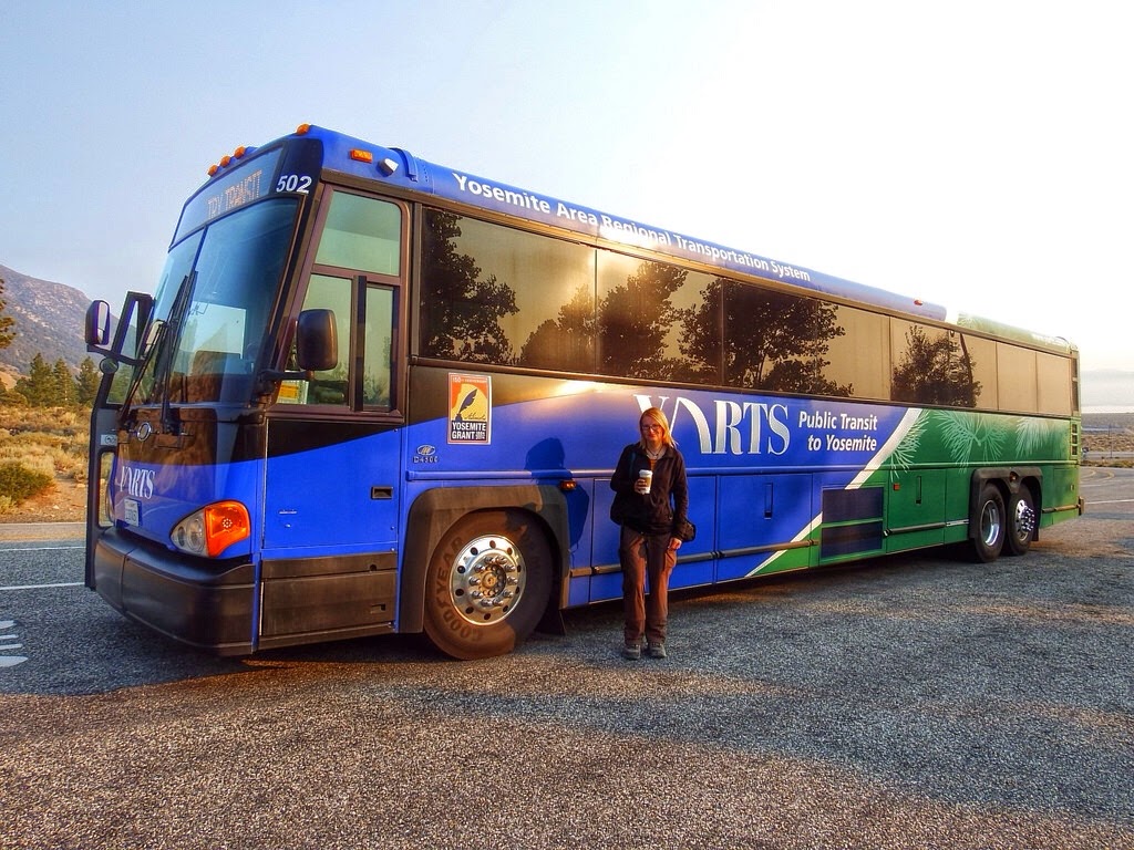 There are three shuttles that run to Yosemite every day; however only one of them go all the way to Yosemite Valley. The remaining two terminate at Tuolumne Meadows. So in reality we could have slept at least an hour longer but since we decided to stop at Tuolumne first, we are up at 6:20 a.m. and ready to check out just before 7:00 a.m. We grab coffee and chai latte and some pumpkin bread at the Latte da Coffee Cafe, which is adjacent to the El Moo Motel and head to the YARTS (Yosemite Area Regional Transportation System) shuttle stop about a block away.
