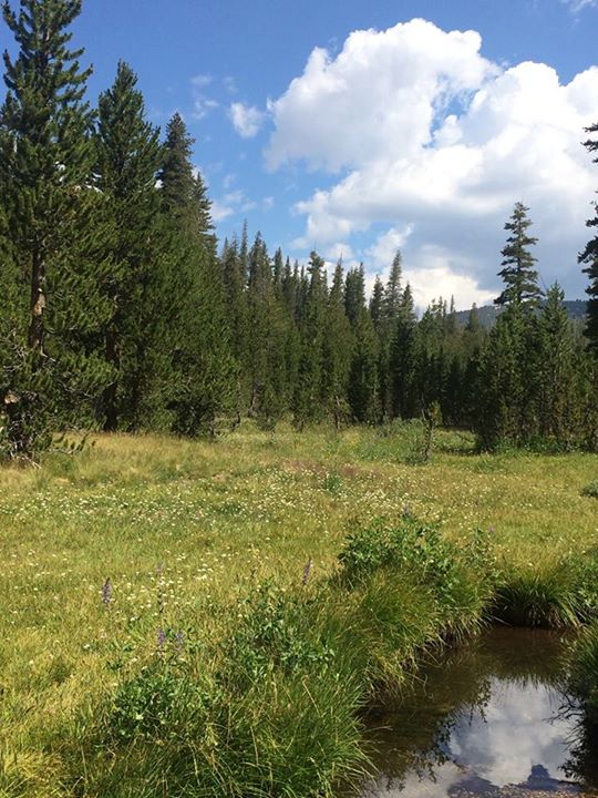 The grade is gentle and we have no problem keeping a 2 mph pace, which gets us to Deer Creek at around 11:00 a.m. It’s a very nice area, full of lush greens and abundant wildflowers. The creek beckons us to sit and dip our feet in its cold water. These breaks became a ritual of ours here on the trail and so far they are keeping our feet happy and blister free.