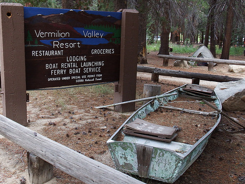 Surrounded by the music of numerous streams it is hard to imagine a lake just several hundred feet below us so dry that guests receive a shuttle across it in 4WD truck rather than a boat. It is a reality we walk into couple of hours later. The valley is hot and dry, and the air carries the scent of pine mixed with the one of dust. I’m hoping we can catch a shuttle to Vermillion Valley Resort but it’s past the regular shuttle hours and our cell phones do not have signal here so we are unable to call for pick up. This means we are to walk the 4.5 miles around the lake. During the planning stage 4.5 miles of gently rolling terrain did not sound like much of a deal on a scale of 200 + miles hike but soon after we start walking it becomes obvious we should have planned more carefully.
