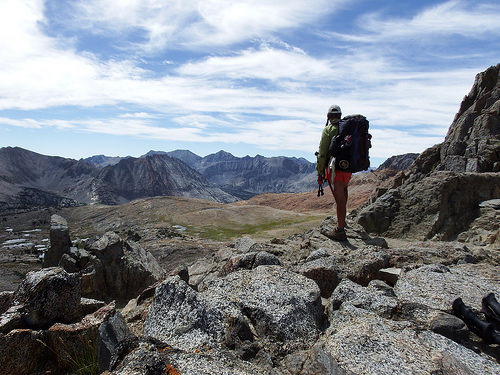 The air remains crisp through the morning and we are thankful for not having to climb Pinchott Pass under a burning sun. At 12,130 feet it is the second highest pass on the John Muir Trail. Once we top it, we find ourselves on a new high point. The altitude brings cool breeze and for the first time in quite a while we bundle in some of our extra layers.