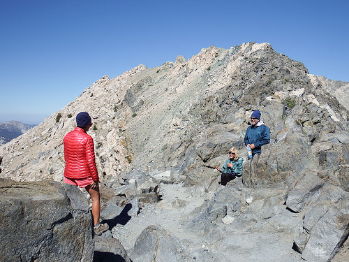 The trail doesn’t have us low for long. It bounces at 9,500 feet and from there we are on our way to Forester Pass, the very last pass on JMT. We don’t plan to climb it today, one pass a day is plenty, but we would like to get as close as possible so that we can scale it first thing tomorrow morning. According to our spreadsheet, there are several camping possibilities along the incline, but not all of them might have running water available at this time of the year. Sarah and Michelle have the same idea and for a while we leap frog with them.
