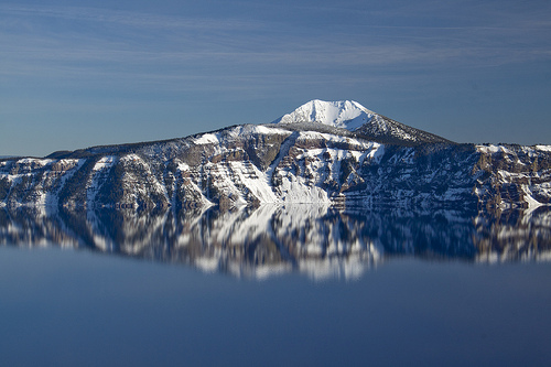 Crater Lake, a gem of the Cascades, is nested in a caldera of Mount Mazama, dormant stratovolcano which was a part of the Oregon’s segment of the Cascade Volcanic Arc. During it’s last eruption in 5,677 B.C. which is said to had been 42 times bigger than the 1980 eruption of Mt. St. Helens, much of the volcano collapsed into its partially emptied neck and magma chamber. Over time rain and snow melt accumulated in the caldera basin forming the deepest lake in the United States. Lake that is isolated from surrounding streams and relies on precipitation as its sole input.