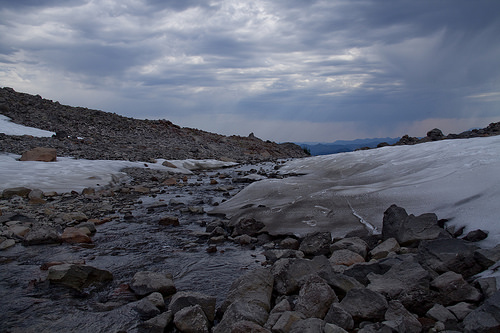 Lily Basin trail continues towards Goat Lake. The mile immediately before and immediately after Goat Lake will be the most alpine of the whole trail, and often snow will linger here late into the summer. Arriving at Goat Lake, mile 8, you will be greeted by amazing views towards Mount Adams. The water of the lake is emerald green when sun touches it and unless it is a very low snow season, there will be chunks of ice floating in the lake well into the season.