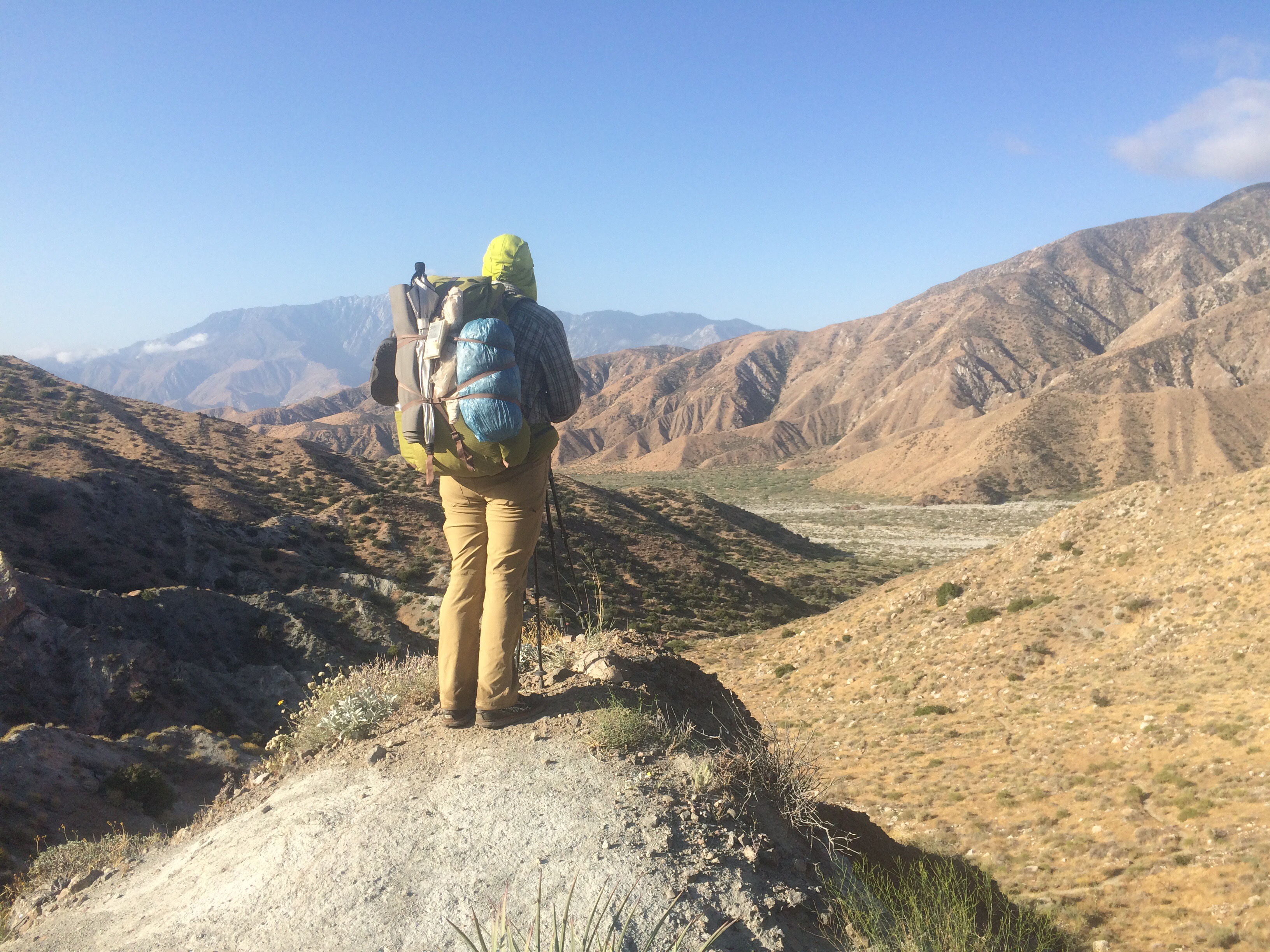 The trail then took us over a saddle and down and up again and for a while we ran a ridge with amazing views of St. Jacinto and Big Bear.