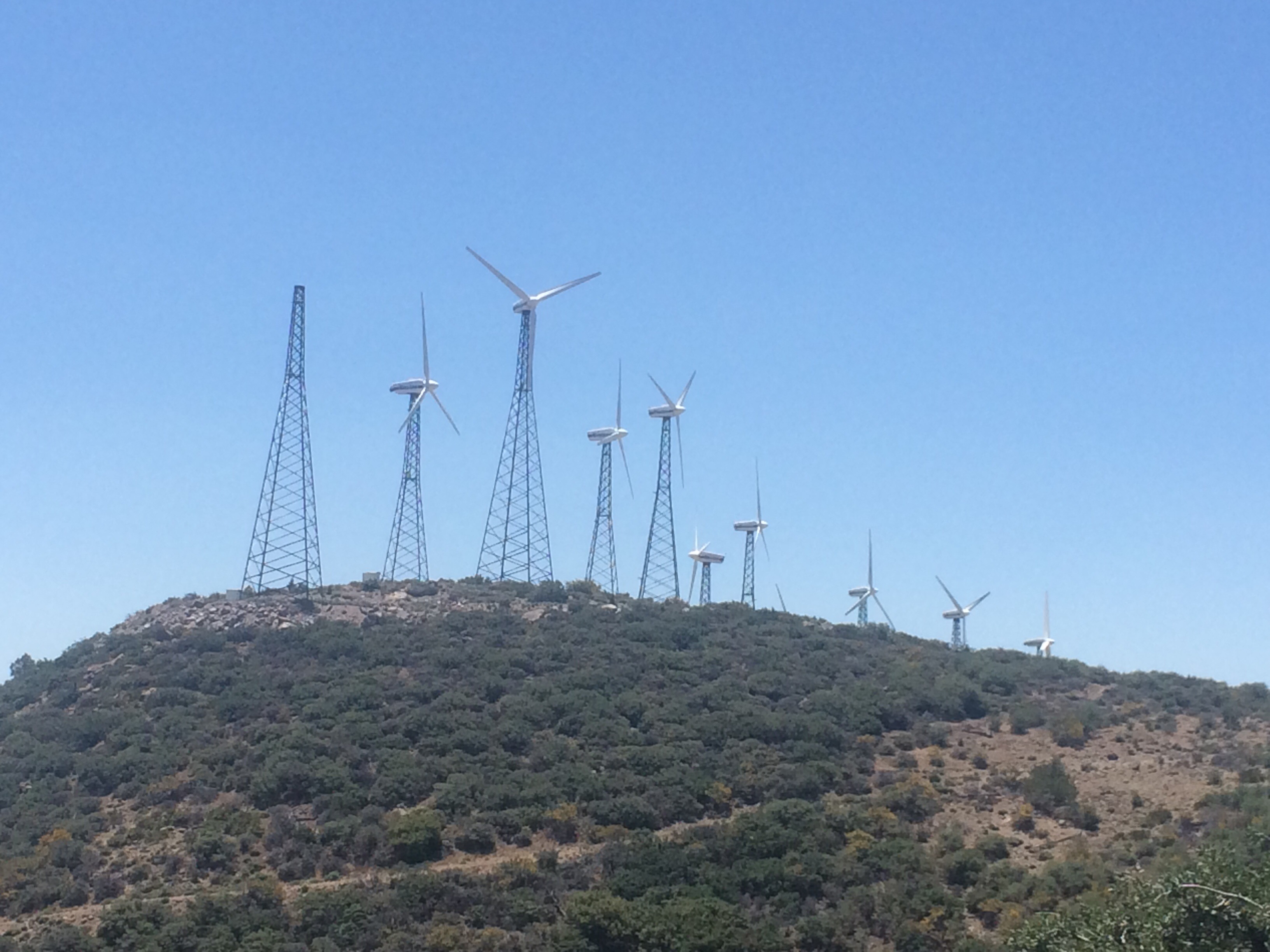 The sun was out today and without breeze it was decently hot. I was happy that we would walk past some wind mills where I was sure we would find refreshing wind to cool us but even though the turbines spun, the air on the trail remained still so every hour or so we found shady spot and took a short break to cool off before we continued.