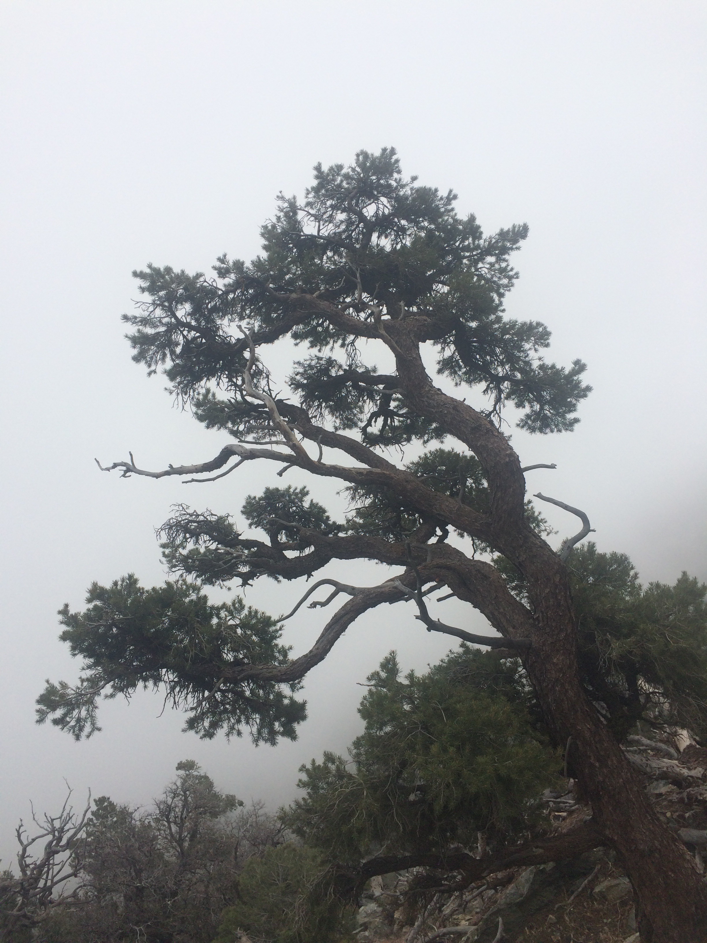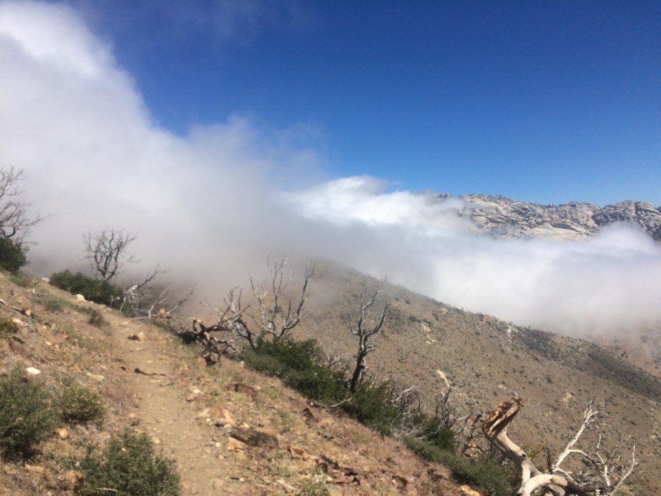 The wind blew wildly in the morning, gusting occasionally to the strength that made me stumble, and it blew clouds from the valley up and over the ridge we walked. Distant views disappeared, the landscape shrank to several feet around us. At one point we found a wind protected site where we sat for a short snack break watching the clouds rolling above our heads. There is something about hiking in the fog that I found very appealing.