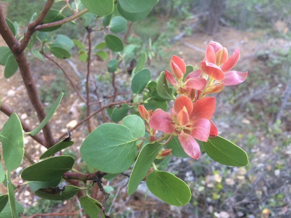 Morning miles went well. The terrain was mostly flat. It took us through a opening full of shrub, the intriguing madrona-like bush we saw in Southern California was dominant in the area.