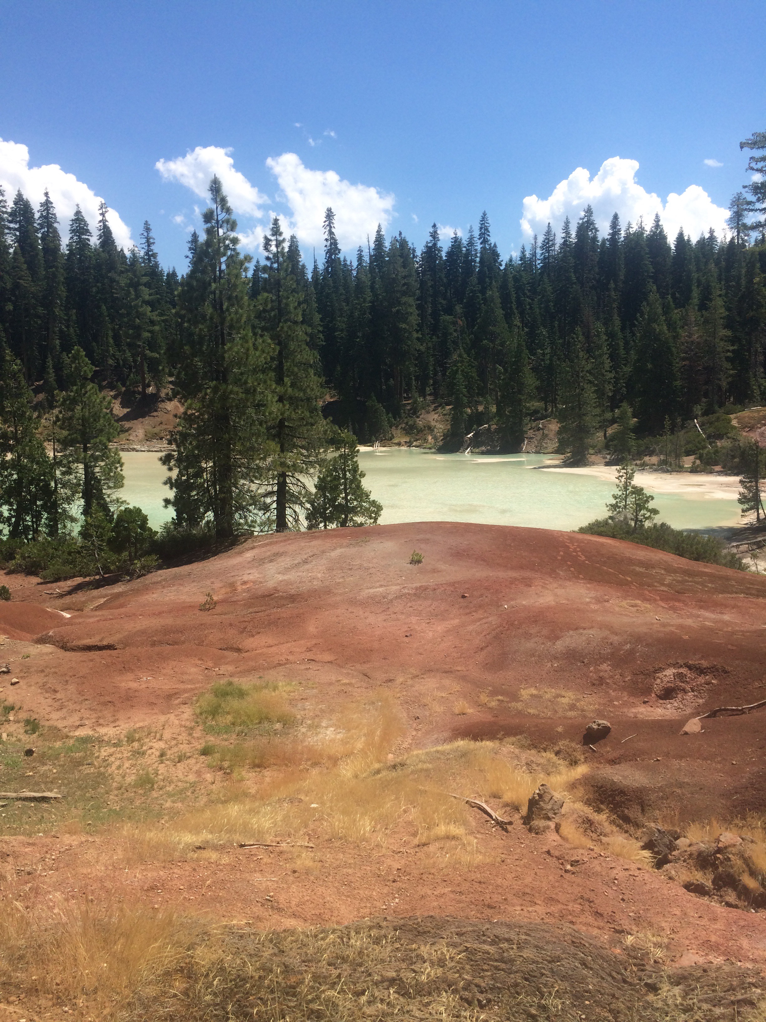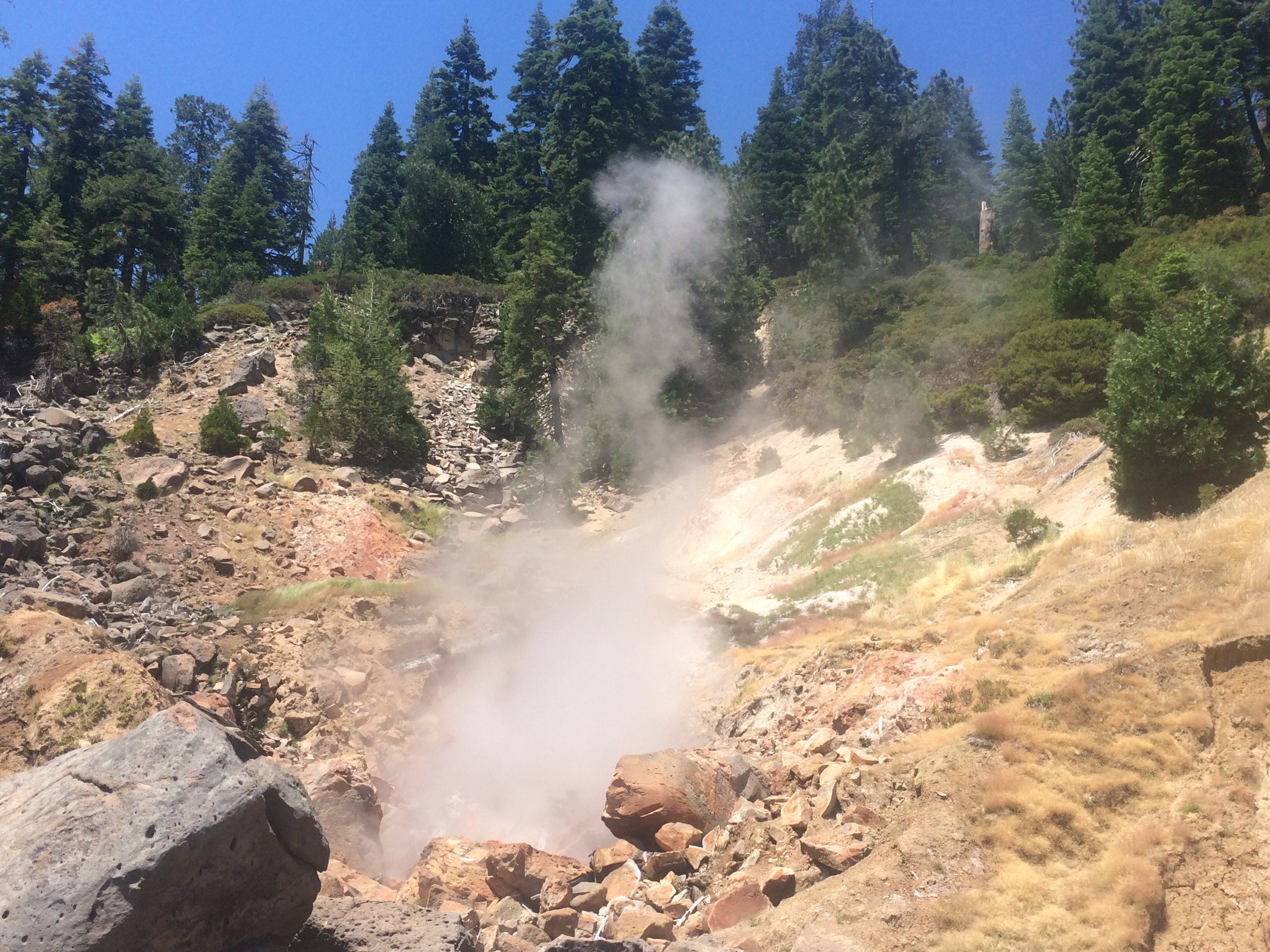 We entered Lassen Volcanic National Park in the early afternoon and soon afterwards we arrived at an intersection with Terminal Geyser which is a steaming fumarole. The Geyser was only 0.3 miles off the trail, so we decided to check it out.