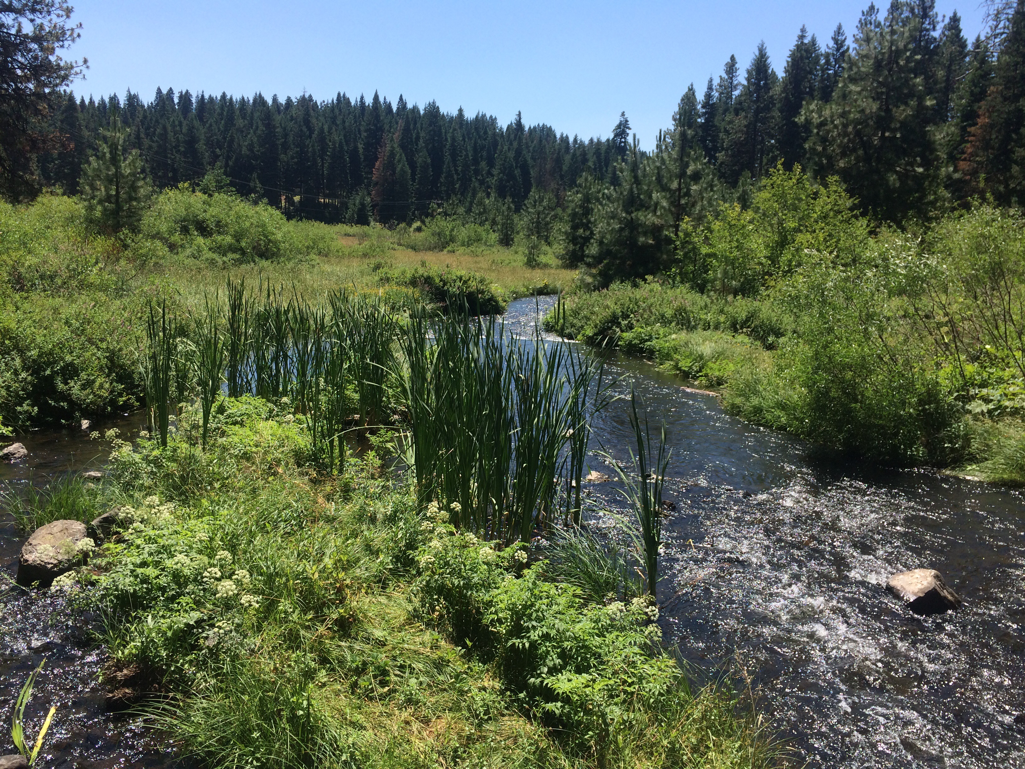 The trail wasn’t super scenic today. Except for several meadows and a small waterfall at the outlet of Hyatt Lake we spent most of the time in forest. The grade remained in challenging and miles went by decently fast. That was a good thing. We estimated 3 days to get to Fish Lake Resort, 15 miles out of town and 20 each of the two remaining days but yesterday we only pulled 10 and it was nice to catch up with our plan today.