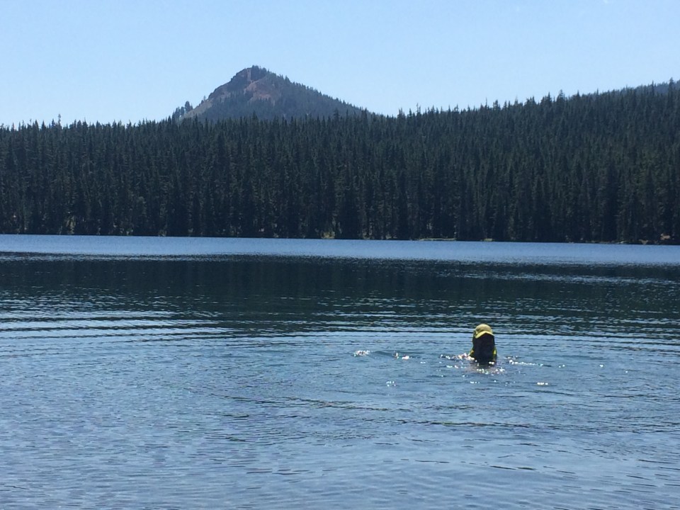 1,325. It is an strange number to celebrate but PCTers who come this far do. It means that we have successfully completed half of the trail. In most years this mile comes just shortly before Chester, California where the official half way point is marked by a sign. This year with people skipping and flipping, many places will serve as the half way there spot. For Dave and I it was just about a mile from Charlton Lake in Oregon. We made a fist bump to celebrate and then we hurried to the lake that was much more exciting than this random place in the woods.