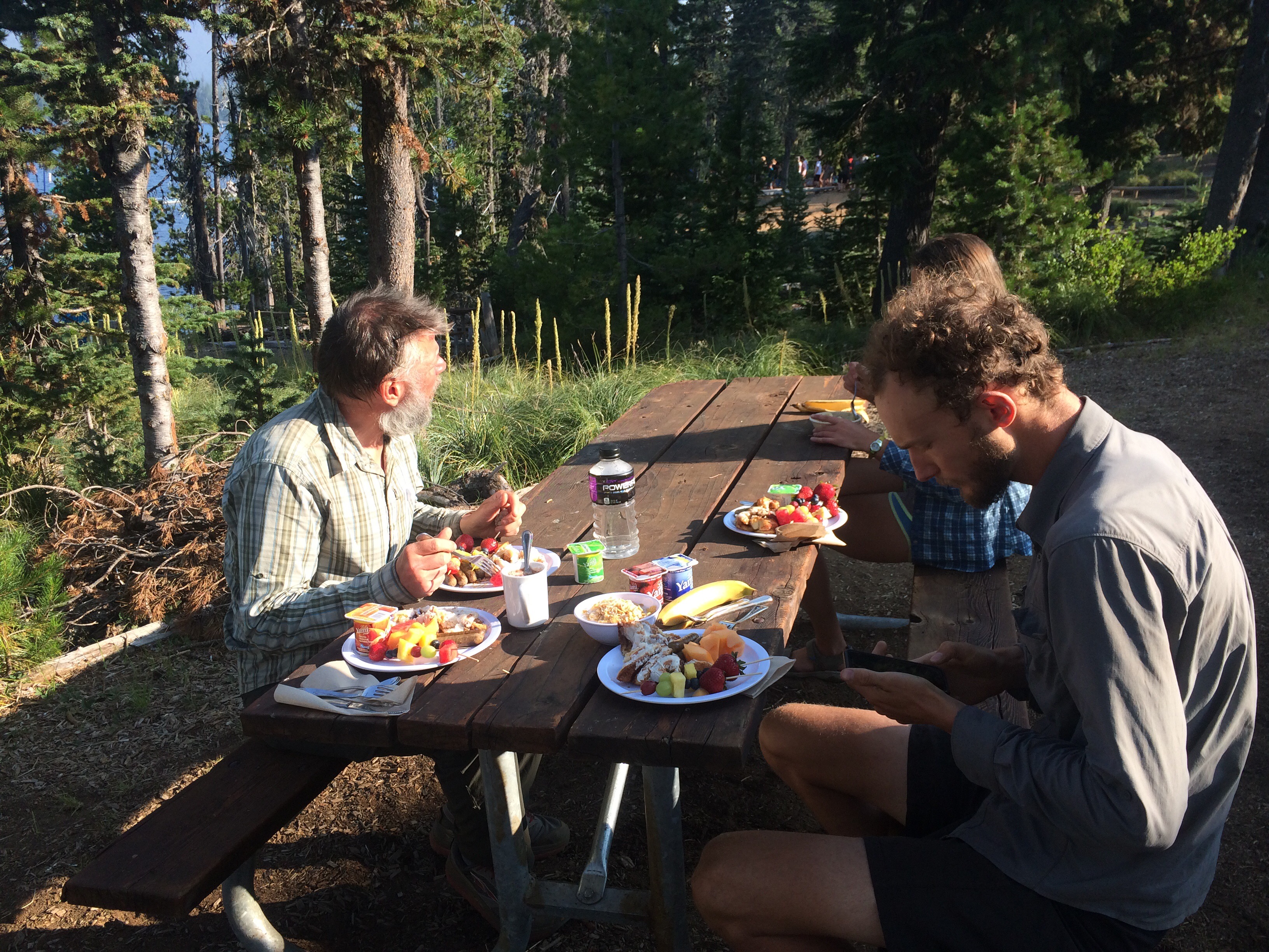 The trail angel that was supposed to pick us up today never showed up. We had great breakfast consisting of cinnamon buns and yogurt and fruit, and then we waited till 11:00 a.m. After that it was time to make a move and hike to Santiam Pass to get a hitch.