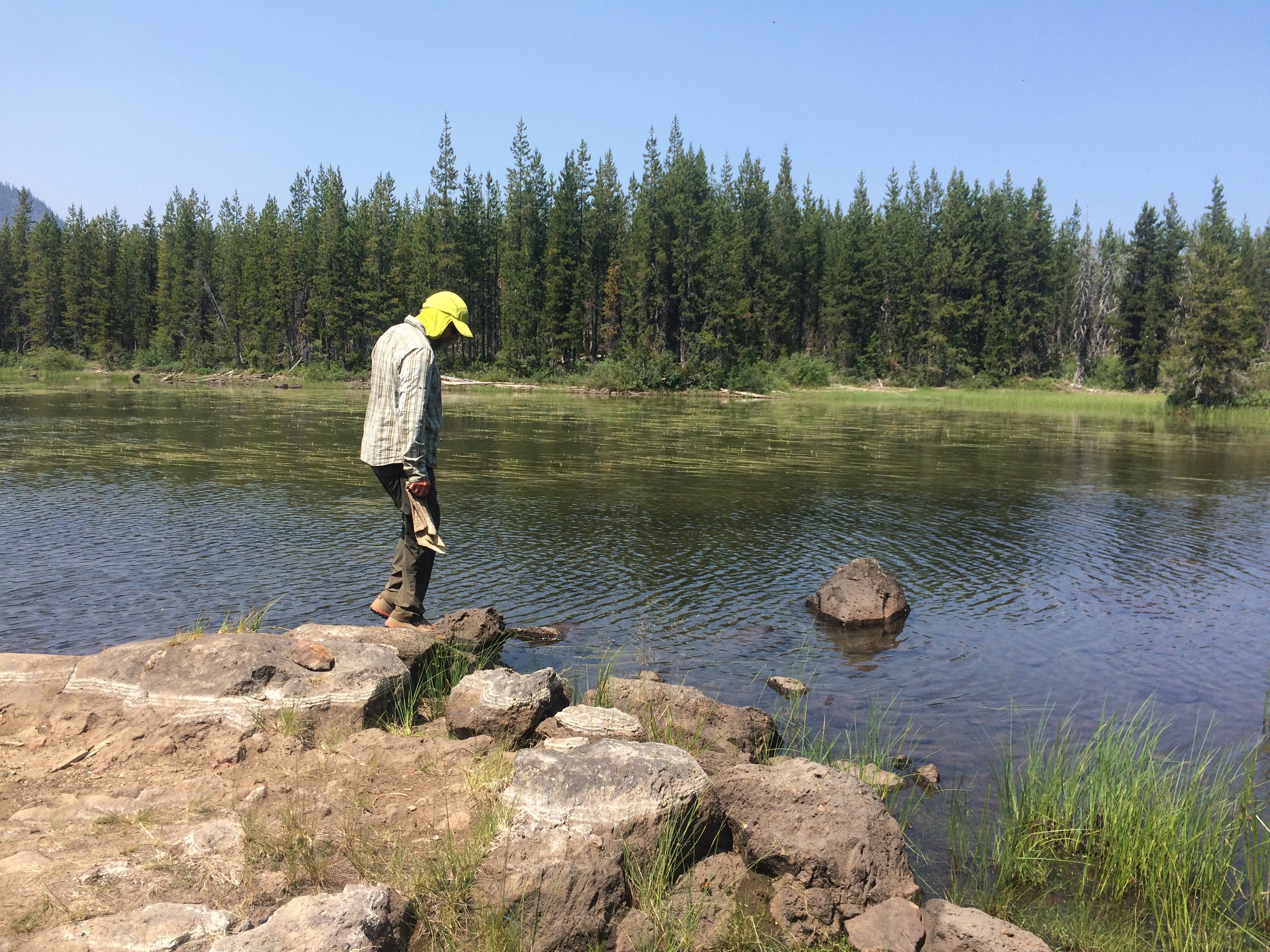 Olallie Lake was a pretty one with a view of Mt. Jefferson which was shrouded in smoke when we arrived but later the smoke settled and we could enjoy the beauty of the mountain looming over the lake.