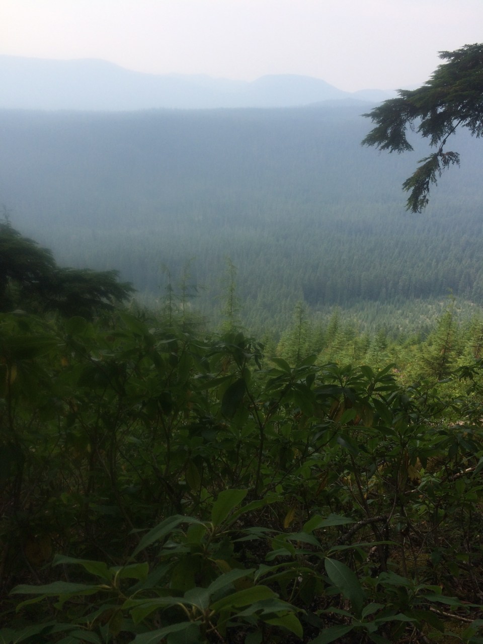 We continued hiking through the green tunnel today and the one time a view of Mt. Hood peeked through an opening in trees, it was so hazy I nearly missed it.