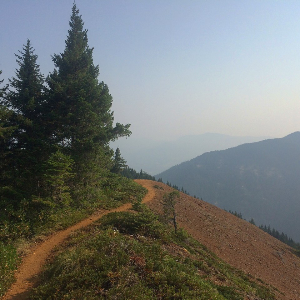 There weren’t many views along the trail, and when once in a while we walked past an opening, the landscape was hazy. The smoke did not dissipate yet but with rain in forecast hopefully the air will clear soon.