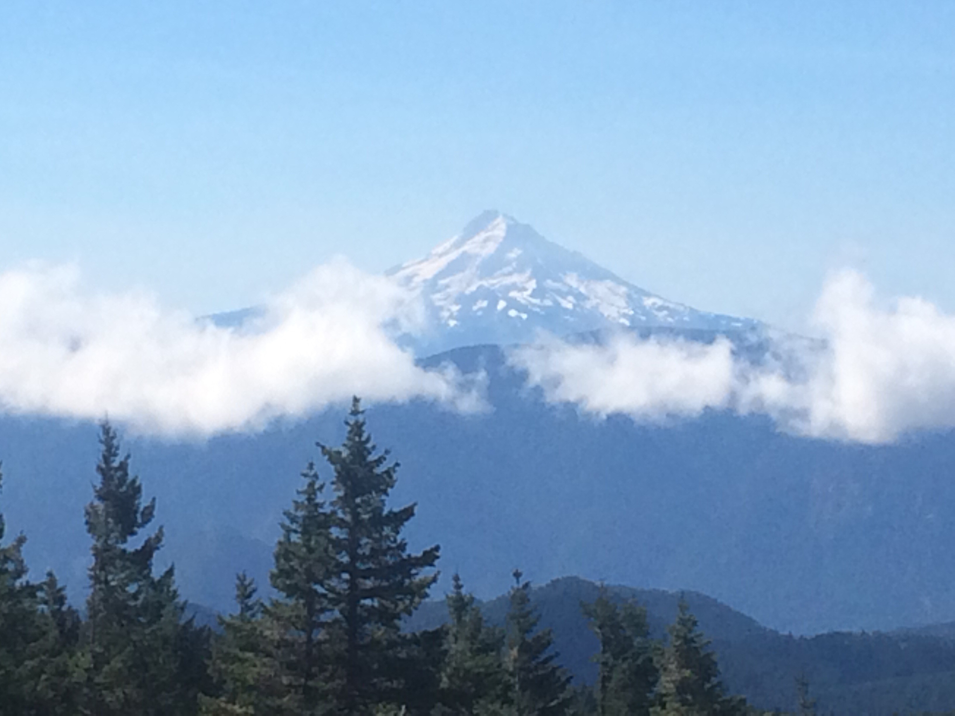 View today consisted mostly of Mt. Hood, which is now seen further to the South, and Mt. Adams which is right in front of us. Occasionally we can also see Mt. St. Helens but her prime time is yet to come.