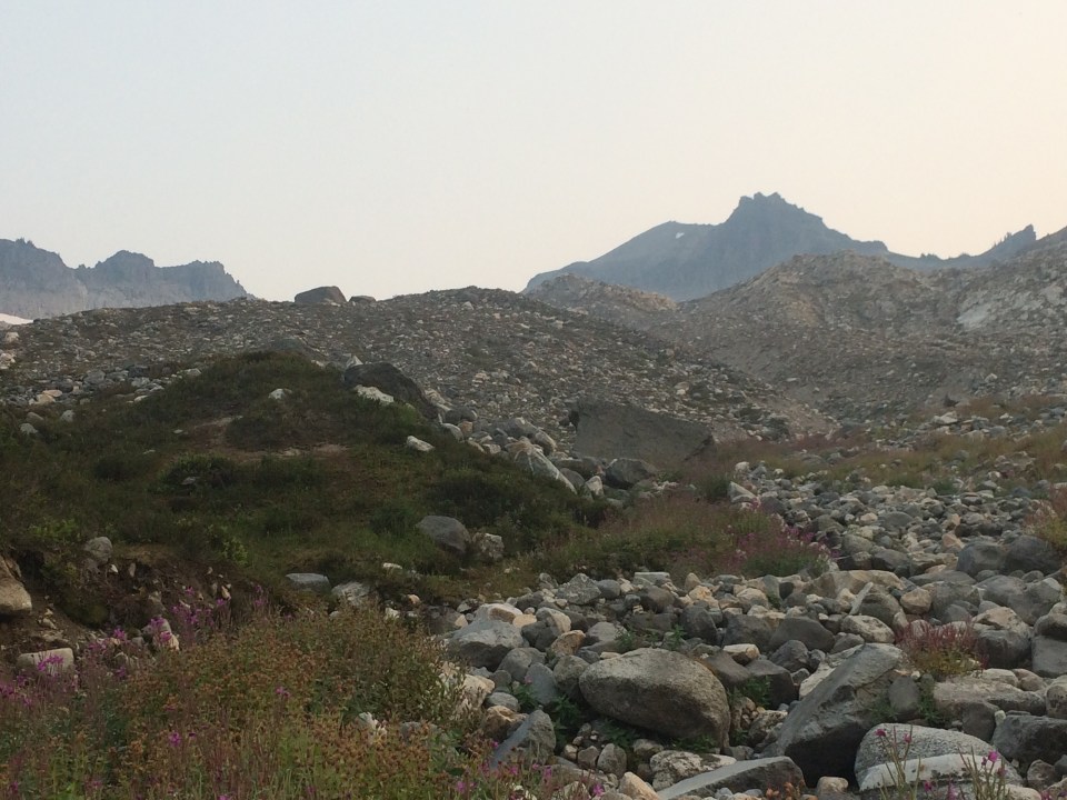 It was hard to breathe in the morning. The air quality improved in the afternoon but from the views we still saw very little. I was bummed about it, especially in the late afternoon when after climbing a steep 3,000 hill, we entered open alpine basin and all were outlines of the rugged mountains that guard it.
