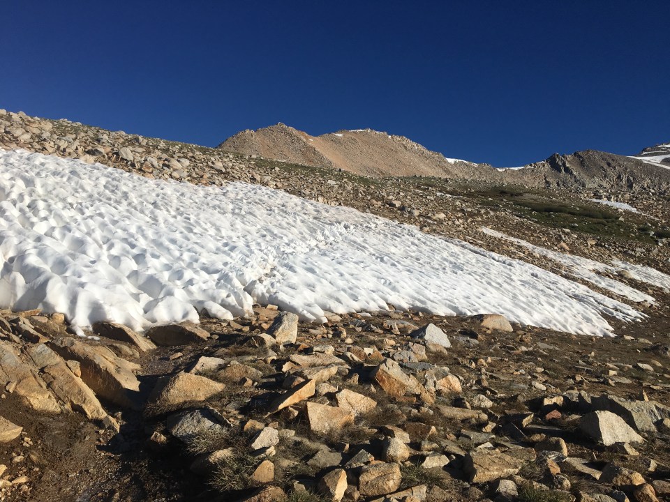 At top of Forester Pass at 9:30 a.m. Didn’t think we would make it before 10:00. I’m happy with my time.