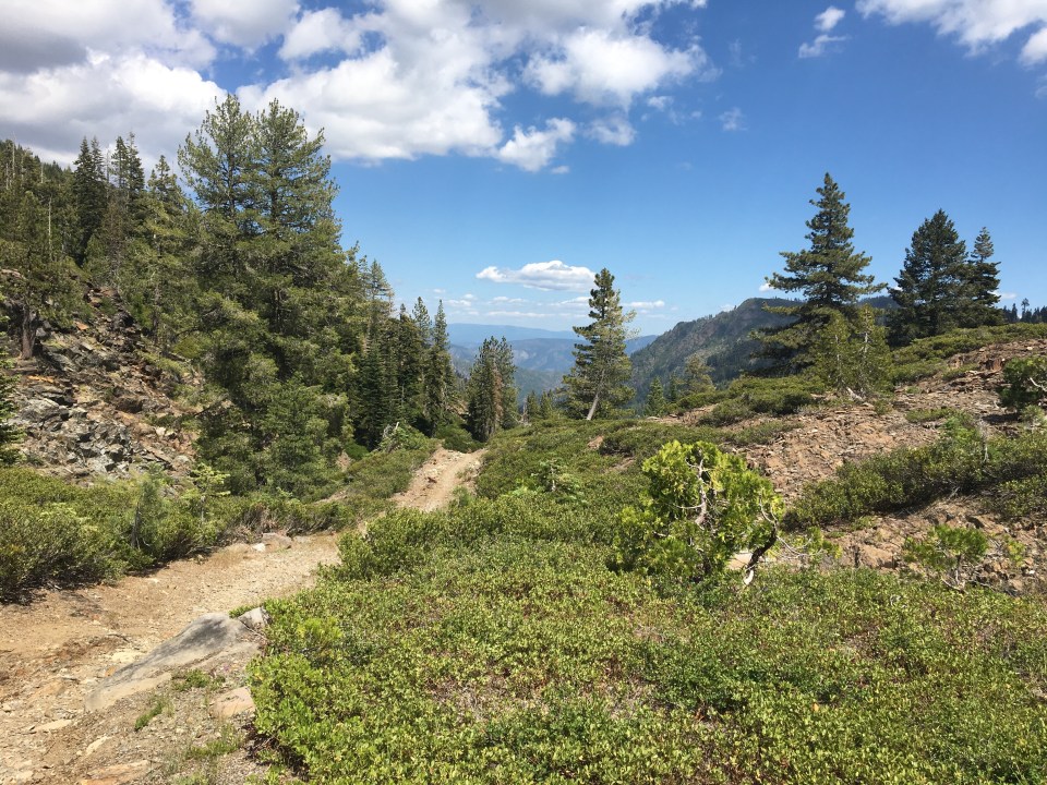 The downhill start innocently enough in a trail lined with pine needles. Soon, however; we are on a rocky steep path with little traction. This path is crossed by numerous creeks we have to rock hop. My energy is draining fast on this terrain and I’m quite happy to arrive at Chip Creek where Swayed already set up camp. Only 9 miles to Belden tomorrow. Hopefully it’s not too busy. A music festival should be taking place there over the weekend. As long as we find a piece of land to pitch tent, that should be a fun event to watch.