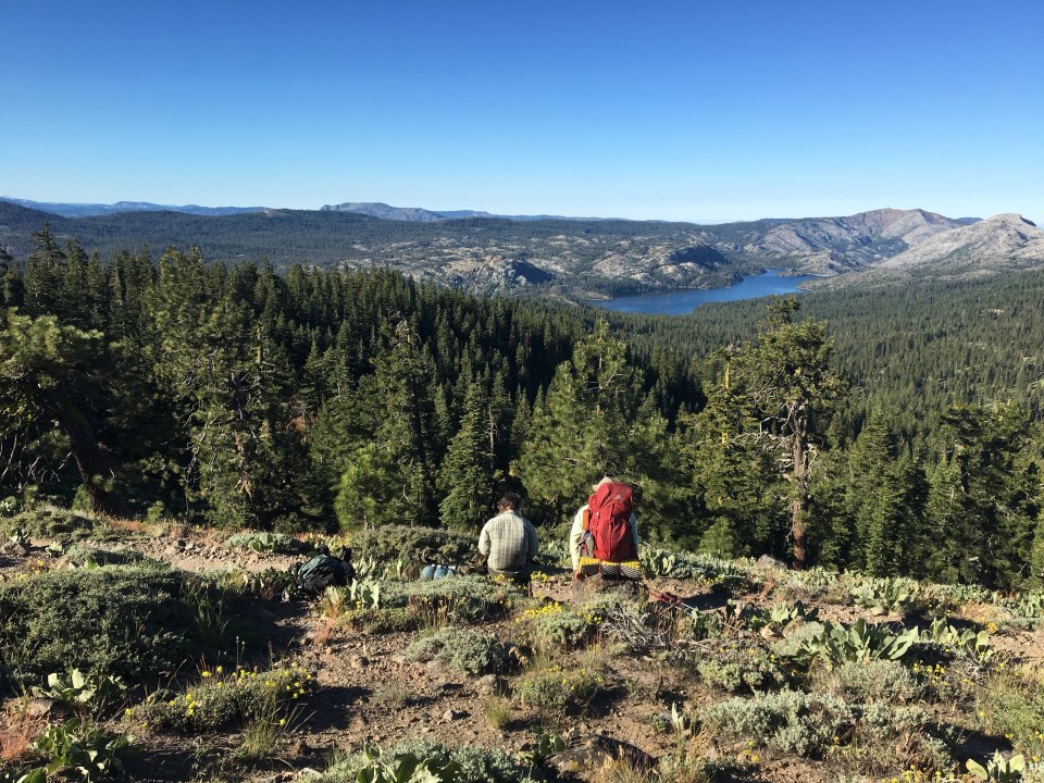 The ridge line we walk is lined by lupine and mule ear, a relative of balsamroot. We get views of several lakes, and in the distance there are taller mountains still covered in snow.