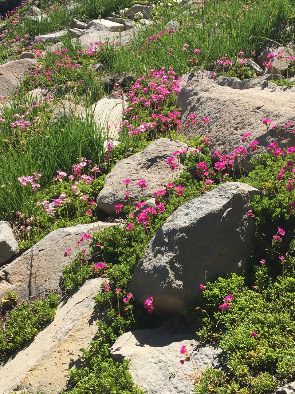 Many day hikers are out. We stop to chat with some, they assure us there are no rattle snakes in this altitude and we are unlikely to see a bear because they all hang out in the valley by the dumpsters.