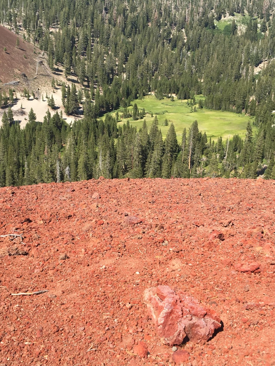 Conditions were good and so after our last meal in civilization for a while, we set out to hike to Crater Creek. Crater Creek is a lovely water source, often running strong all through the season and it has several very cool campsite on its south side. Crater Creek is also in the base of Red Cones. Four years ago our friends climbed one of the cones. We opted not to and I kind of regretted it later. I was not missing the cone today.