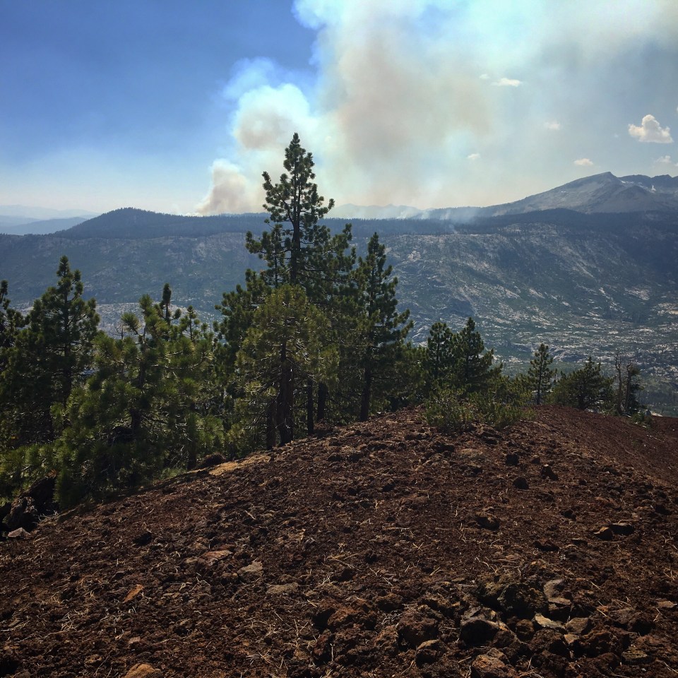 The view from the top was spectacular. We would never know we were hiking by a verdant green meadow if it wasn’t for us having this aerial view. We could also see the smoke from Ferguson Fire. It was beyond any fire we had ever seen. My heart was crying for the forest lost, and even more for the people whose homes are still in a very real danger of being consumed by the fire.