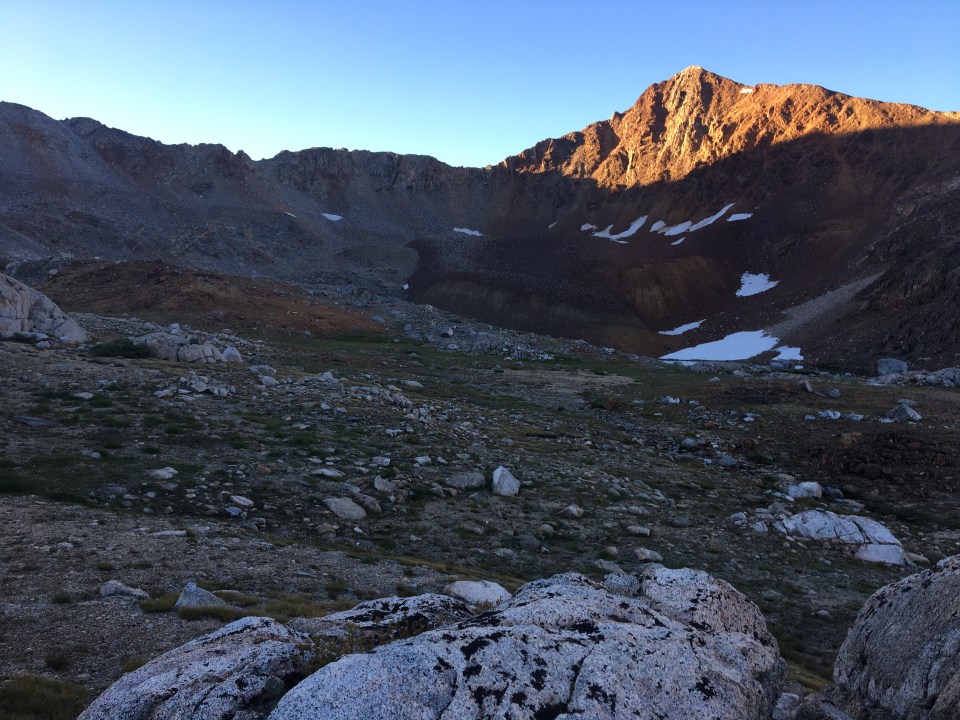 We are able to secure the same site we had 4 years ago. It was rather quiet then, one more party and us, everyone else stayed at the other side of the lake. It’s different today. Most people camp here by the intersection with Sixty Lakes Basin.