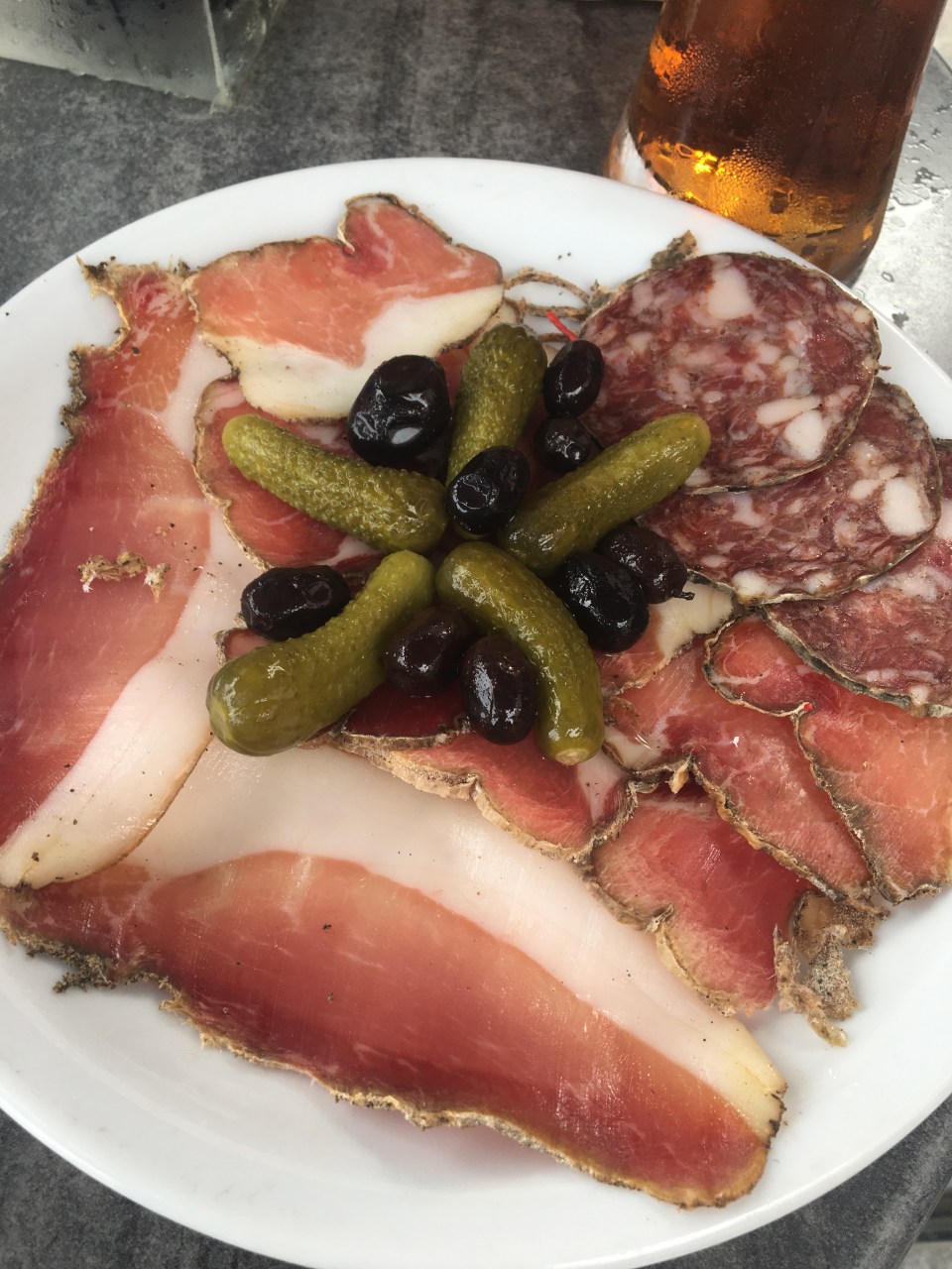 Restaurant are plentiful as well, and open even during holidays. We had a wonderful meat and cheese plate at Bar Le Méditerrannée (€24.00 plus €16.00 drinks) and a wonderful seafood pasta at A Tana that set the two of us back by €46.00, two drinks included. Many locals come here for pizza and it smelled and looked delicious, and would have been little cheaper.