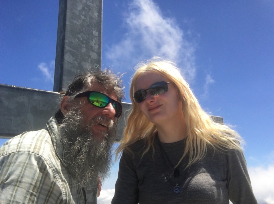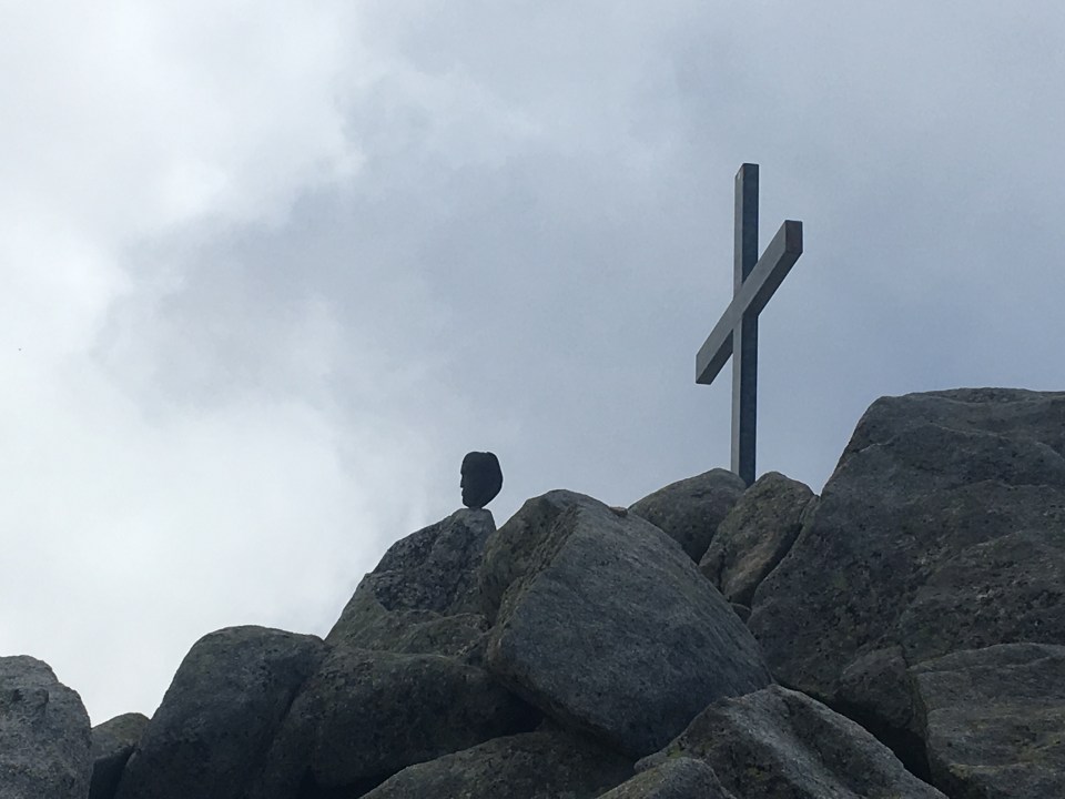Once past the outcrop we picked up the narrow path again and let the cairns lead us towards Mount Renosu. Eventually the cross at the summit came to a view and we made our dash for it through the open, gentle slopes terrain.