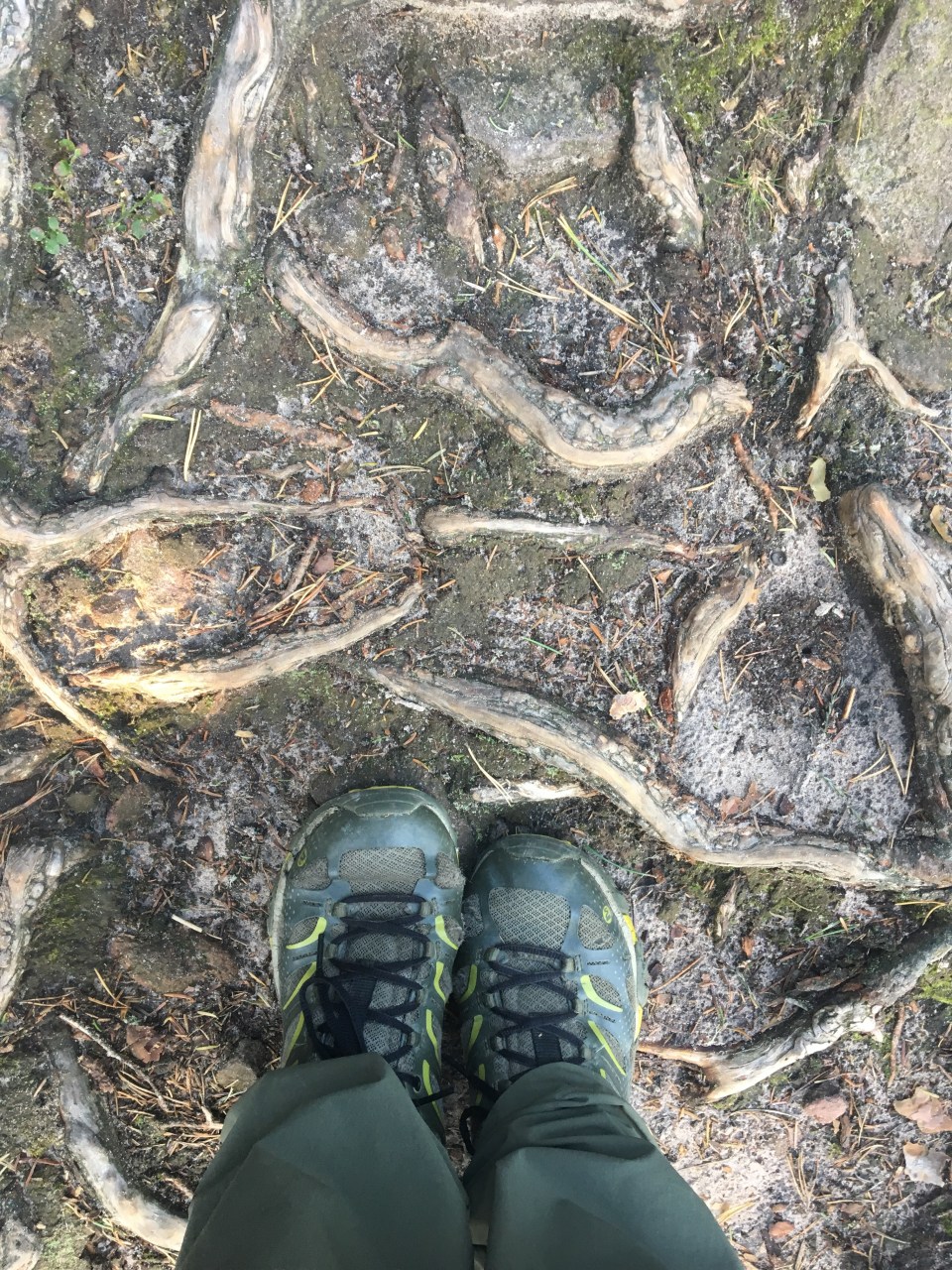 Camping was not our plan tonight, two small huts were indicated on the map, just like the one we spent a night at yesterday and we hoped to use one of them tonight but when we arrived to the intersection the map suggested we would find them, we were surrounded by thick forest only. For quite a while we searched the area in vain. The night was falling. Soon the daylight would fade. We no longer had the luxury of time and so we settled on a flat spot in a forest, right in the middle of a small side trail. It was the only place where the surface was durable and our stay would have a minimal effect on the environment, if any at all. Hopefully tomorrow the hut we hope to stay in will be where our map promises we should be able to find it.